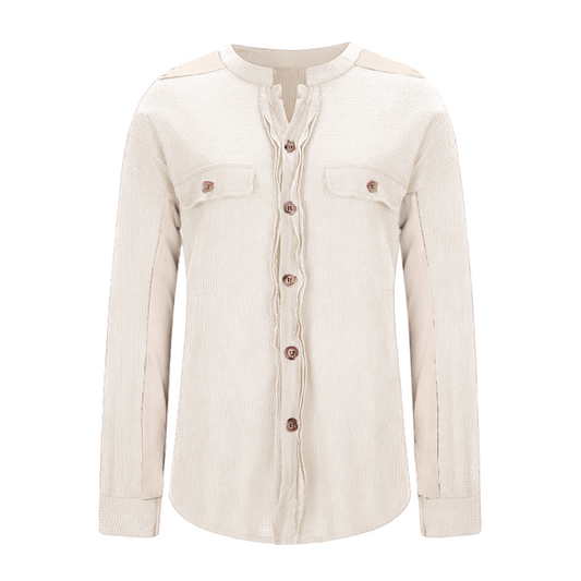 Women's Loose Fit Batwing Sleeve Waffle Knit Button Down Shirt Shacket Tops
