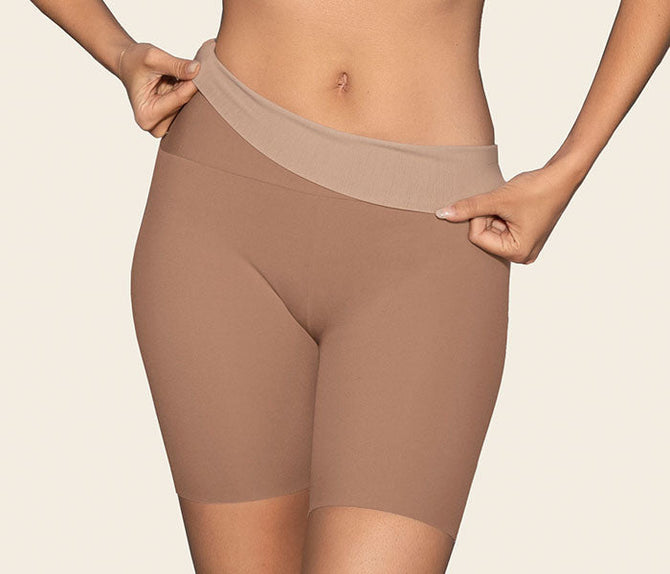 This is a truly innovative slip short is made of super soft fabric for moderate compression. Most importantly, this short features innovative anti-slip grip technology at the waistband for no roll-down. Its seamless design and laser cut leg bands ensure that it won't be visible under your clothes.