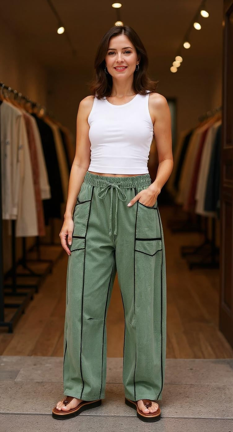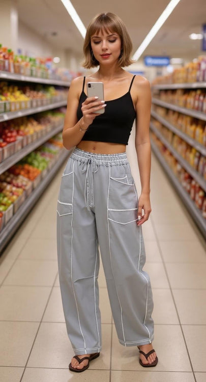 Ναι! Δύο βαθιές τσέπες στο ισχίο χωράνε τηλέφωνα έως 6,7″, ενώ οι πλαϊνές τσέπες cargo είναι επίπεδες αλλά επεκτείνονται για κλειδιά, κάρτες ή σνακ. Χωρίς αδέξια εξογκώματα—μόνο πρακτικός χώρος αποθήκευσης.