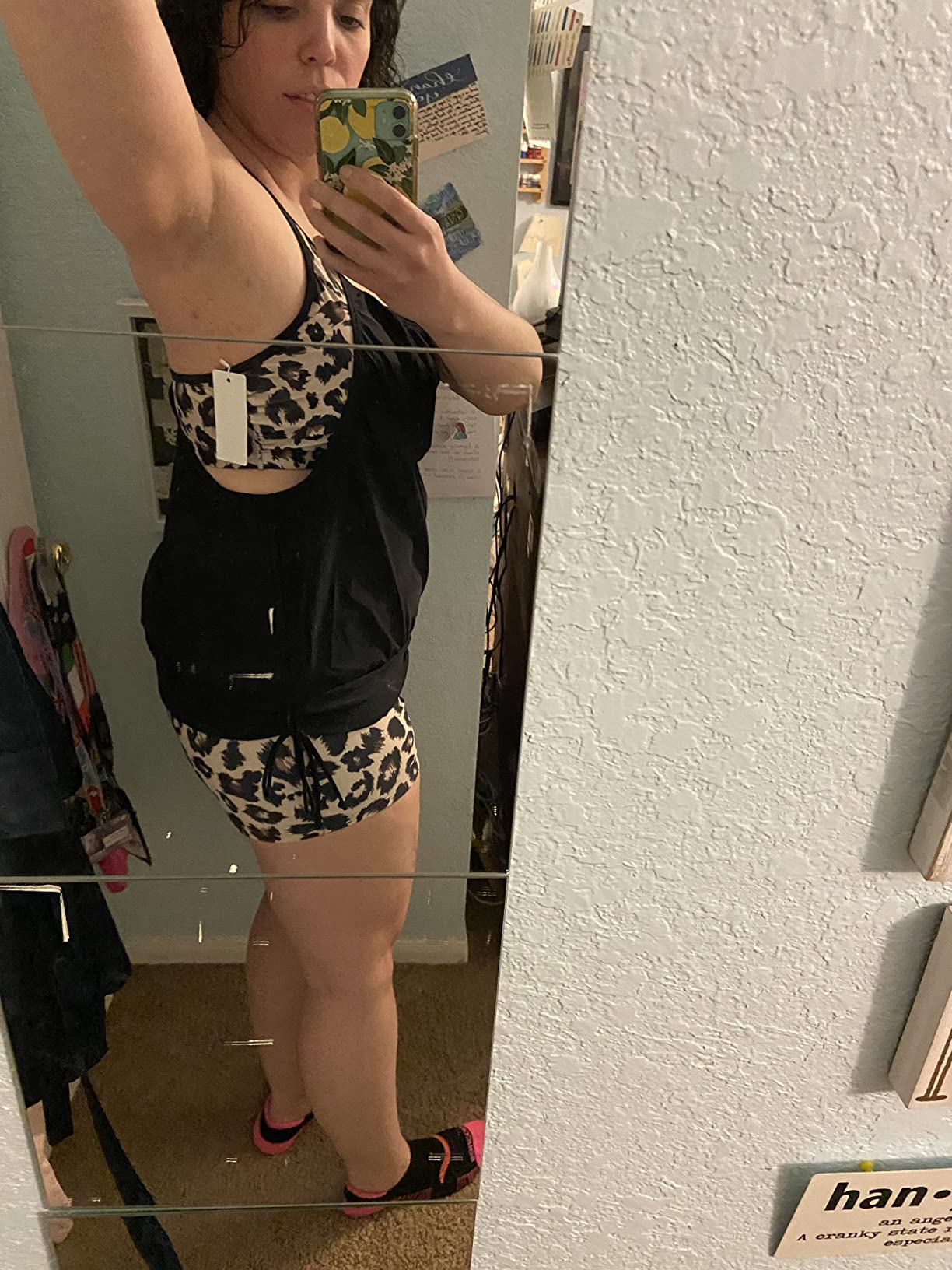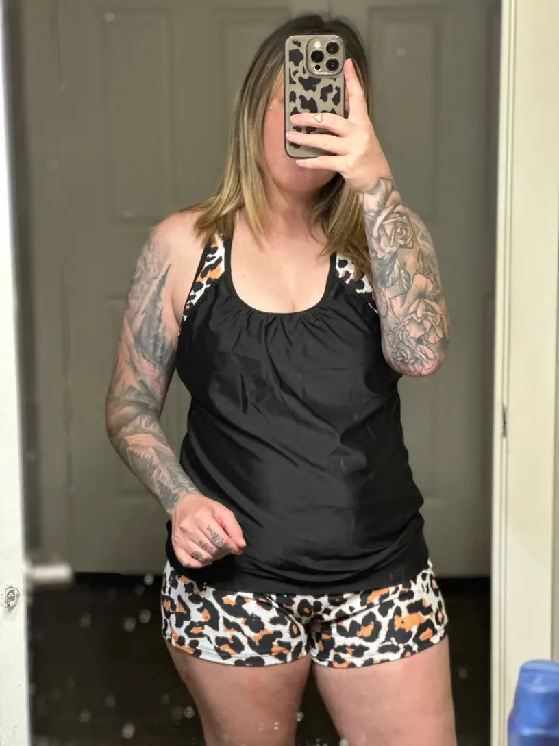 Cet ensemble tankini comprend un haut qui s'accorde parfaitement avec un shorty sportif ou votre bas de bikini préféré. Le haut ajustable bretelles doubles croisées fournir soutenir et soulager la pression sur les épaules, assurant un confort et une liberté de mouvement tout au long de la journée.