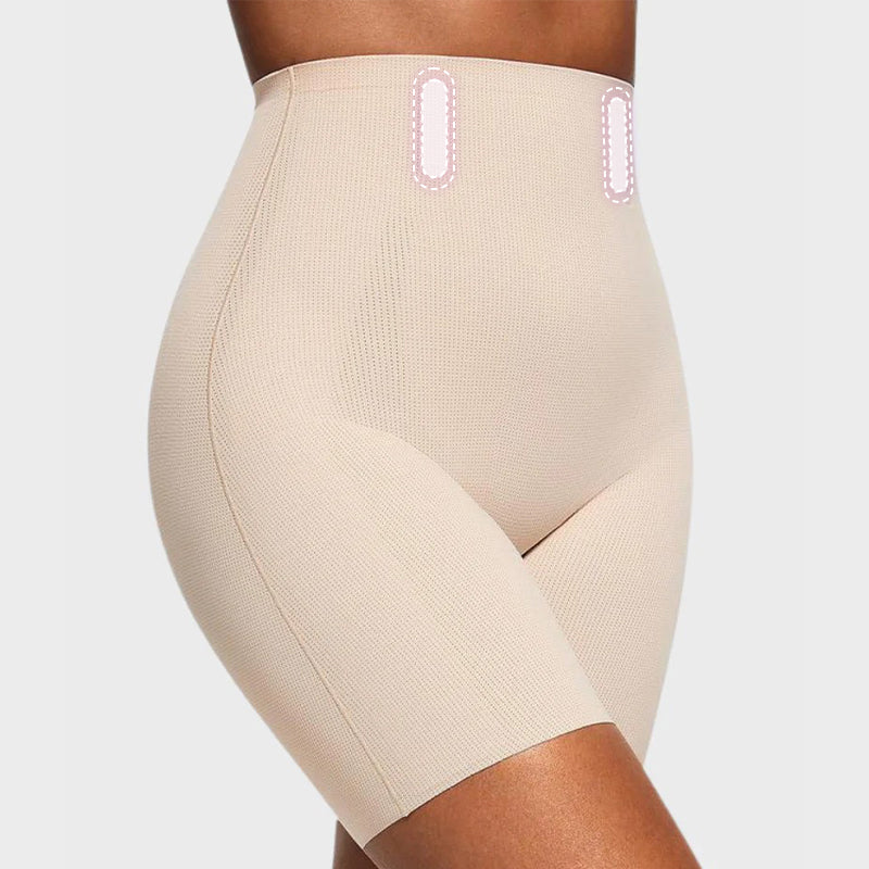 No more adjusting throughout the day.Built with a smart anti-slip waistband and flexible boning, this short grips your body gently while keeping everything in place.The high-waist fit cinches your belly, smooths love handles, and stays put under anything—from jeans to dresses.