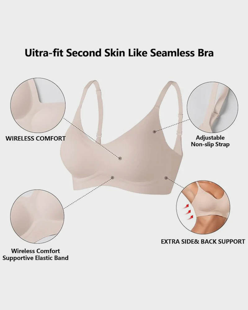 Flatter your curves with seamless push-up magic! The memory foam cups enhance your natural shape while the wire-free design keeps you comfy all day. No digging, no slipping – just a perfectly lifted silhouette that feels like a second skin.