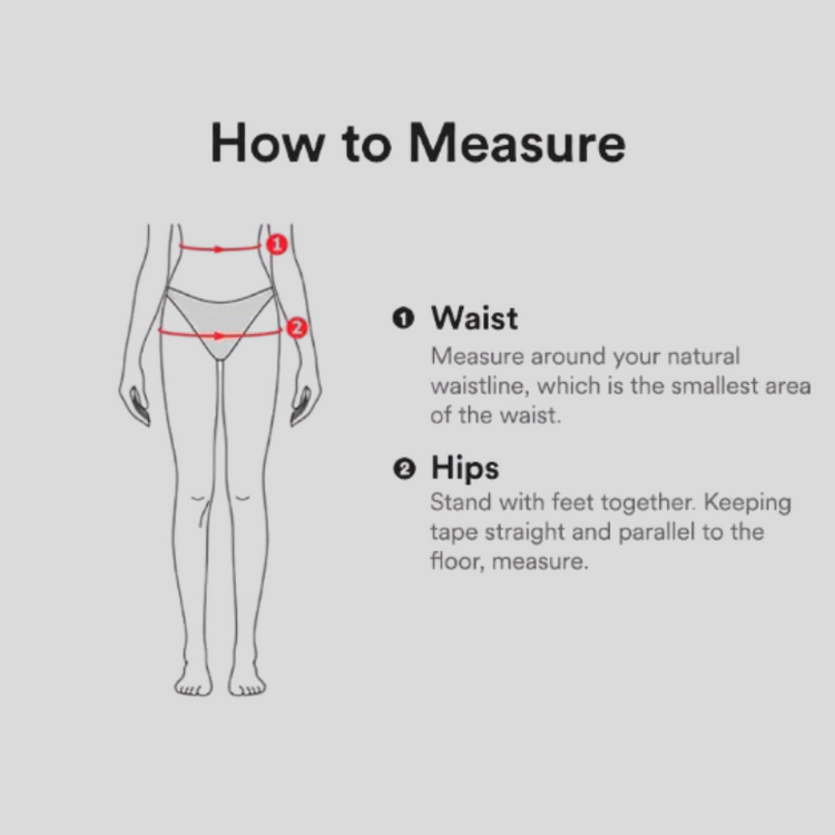 Ensure a flawless fit with our simple measuring guide. Follow these easy steps to accurately measure your waist and hips, helping you find the size that's just right for you.