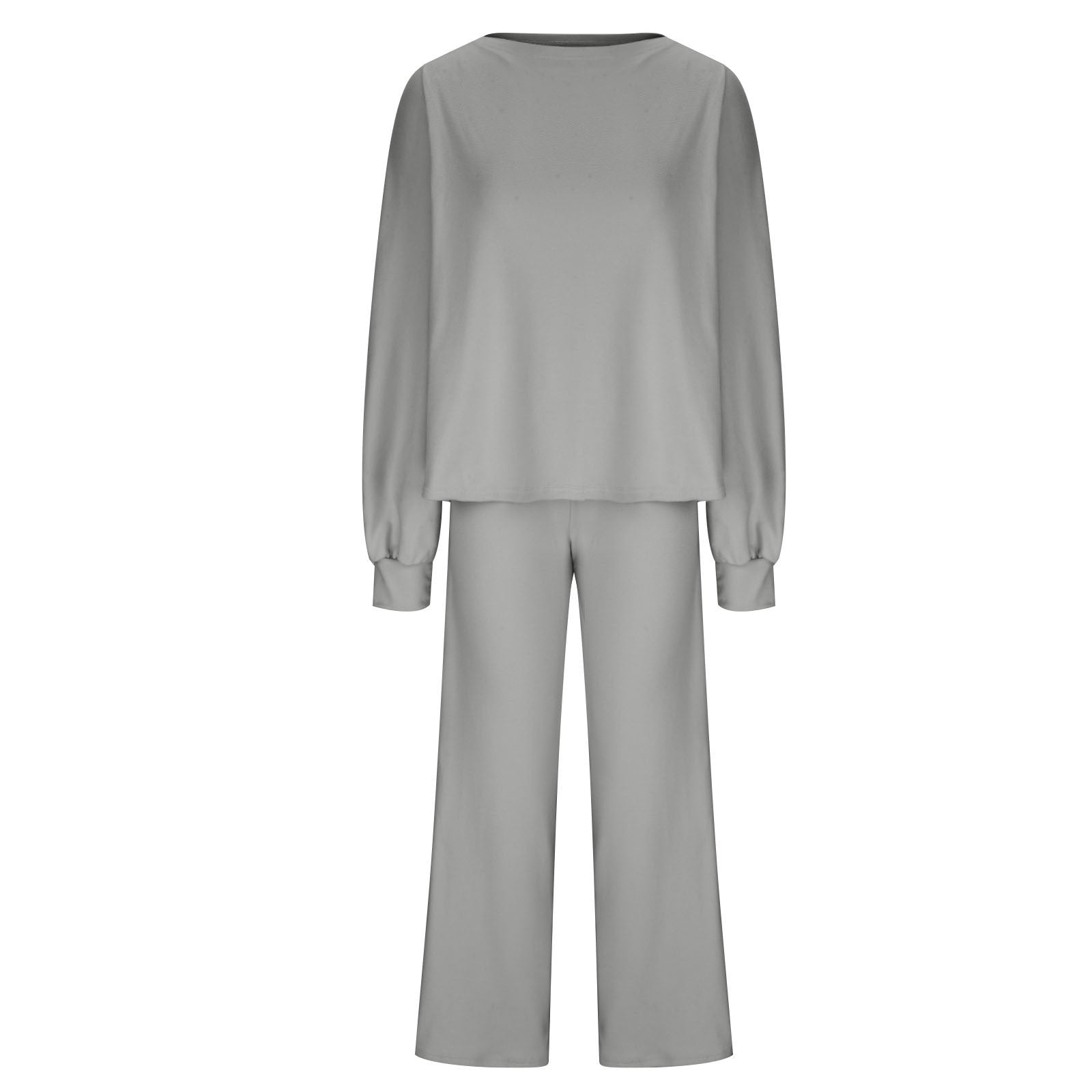 Womens Fall Winter Casual Solid Knitted 2 Piece Sets Long Sleeve Hoodie