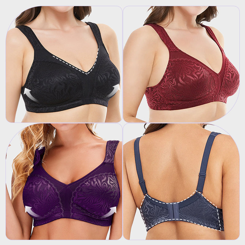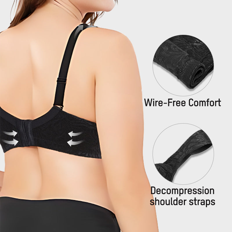 No more shoulder pain. Wide cushioned straps sit comfortably on your skin without digging in, effectively relieving pressure from heavy busts. Adjustable and supportive, they ensure the bra stays secure without slipping, making it the perfect choice for women who need lasting comfort and dependable support.