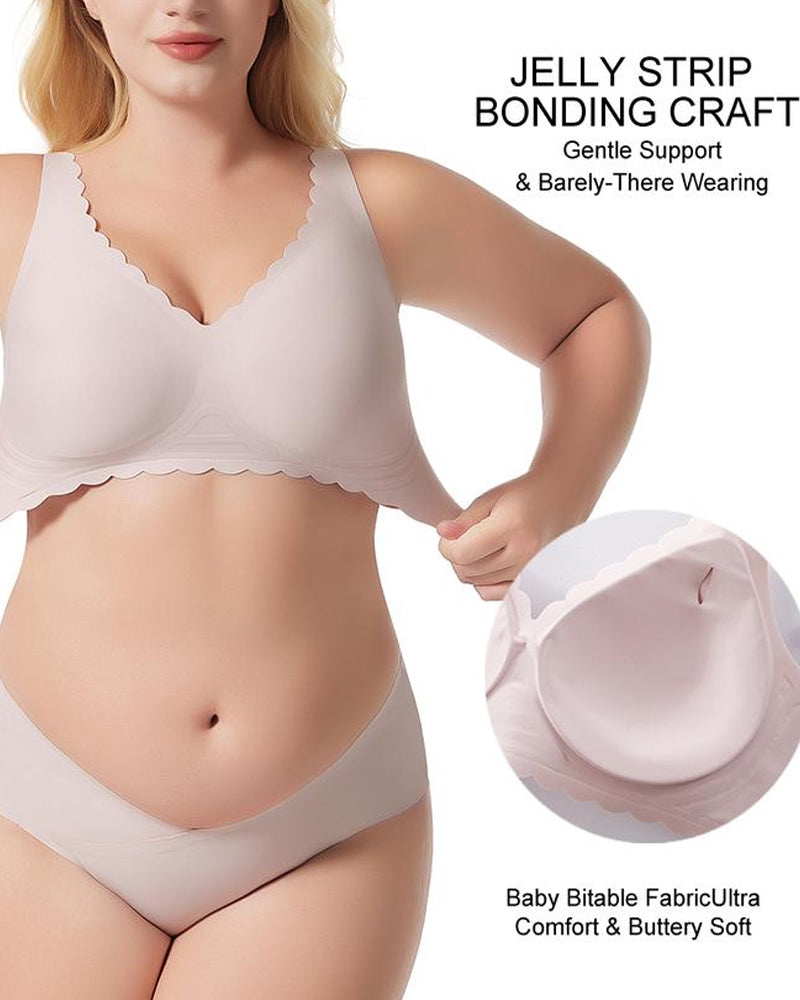 Designed with a Deep V neckline to naturally lift and shape, finished with sweet scalloped edges for a soft, feminine look. Wide, pressure-relief straps and buttery-soft fabric hug your body gently—pretty, supportive, and unbelievably comfortable.
