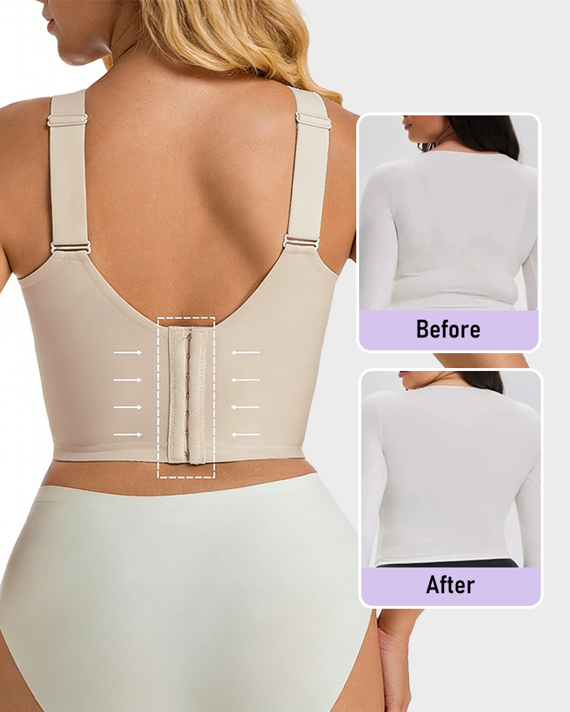 Elastic straps flex with your movement, reducing shoulder pressure without slipping.Wide back band with multi-hook closure smooths and supports, staying flat and secure all day.