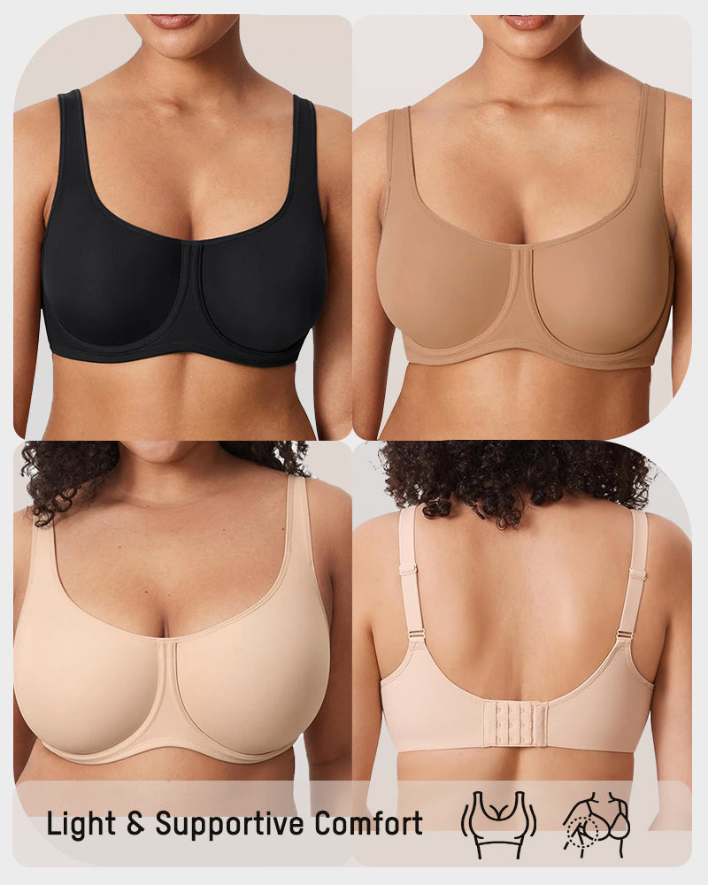Thick straps and a U-back design keep everything smooth and supported, while a wide 3-row hook closure ensures a secure fit. Unlined for a natural look that’s perfect for everyday wear.