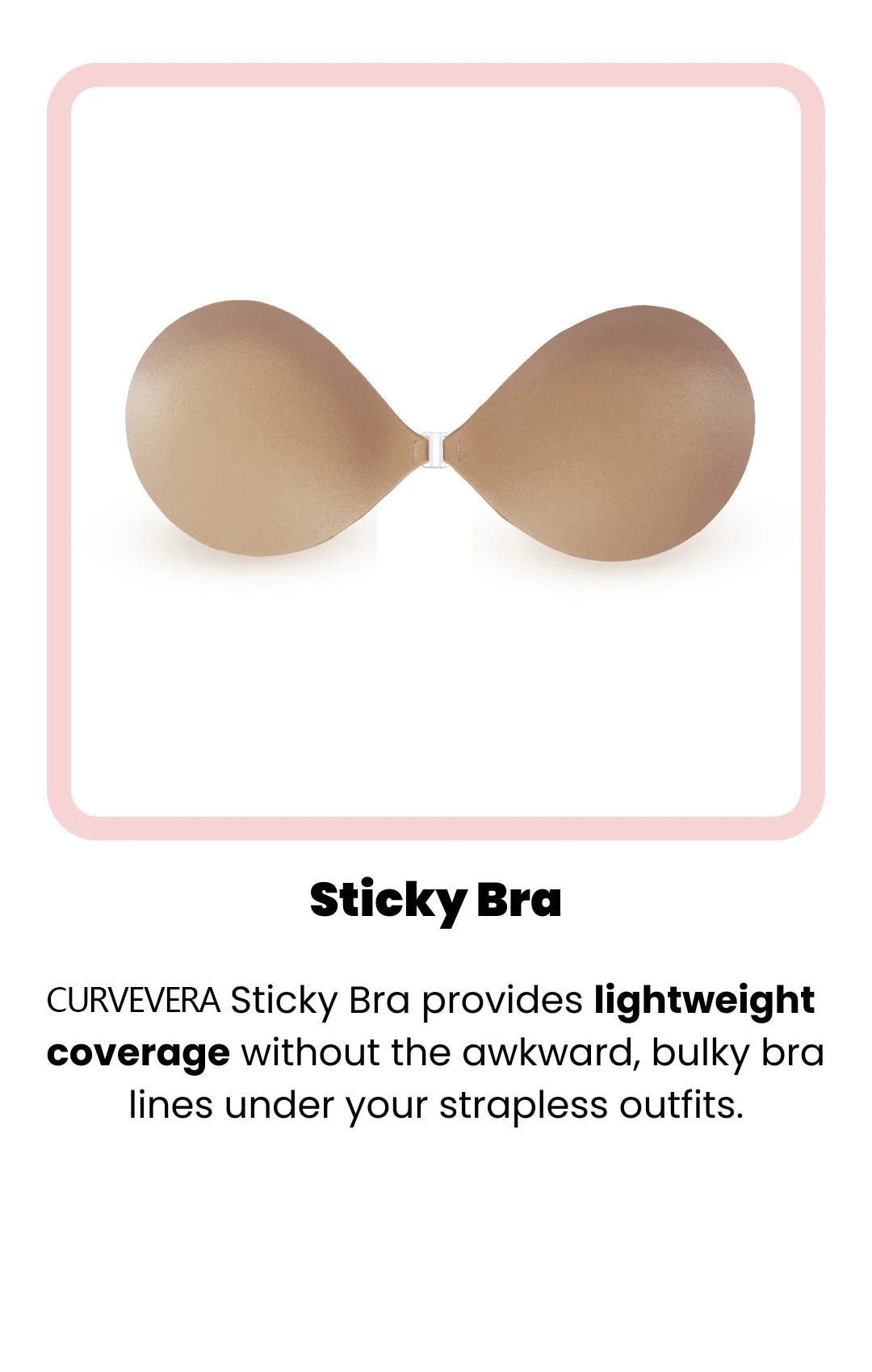 How to Remove: To remove your sticky bra, unclasp and gently peel off one cup at a time, starting from the top outer edge. Reapply protective films onto the sticky bra and store back into the CURVEVERA gift box, away from direct sunlight.